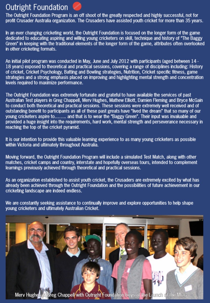 The Crusader's Outright Foundation held a Test Match against a Vic Academy Team at Scotch College on Jan 5-8